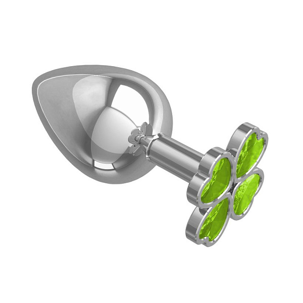 Анальная втулка c кристаллом "Клевер" Большая анальная втулка выполнена из металла и имеет размеры, подходящие для яркой анальной стимуляции. Ограничитель (стоппер) и разноцветные стразы добавят игривости и красок в ваши игры, а увеличенный размер рельеф сделает ощущение для обоих партнеров ярче. Металлическая анальная втулка прекрасно подойдет для игр с температурными режимами, так как ее можно нагревать и охлаждать по вашему желанию. Можно использовать с ЛЮБЫМИ видами лубрикантов. Анальная пробка упакована в пакет с фирменным логотипом, в комплекте есть мешочек для хранения.Характеристики