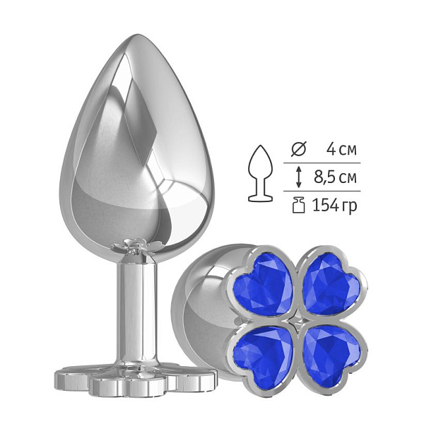 Анальная втулка c кристаллом "Клевер" Большая анальная втулка выполнена из металла и имеет размеры, подходящие для яркой анальной стимуляции. Ограничитель (стоппер) и разноцветные стразы добавят игривости и красок в ваши игры, а увеличенный размер рельеф сделает ощущение для обоих партнеров ярче. Металлическая анальная втулка прекрасно подойдет для игр с температурными режимами, так как ее можно нагревать и охлаждать по вашему желанию. Можно использовать с ЛЮБЫМИ видами лубрикантов. Анальная пробка упакована в пакет с фирменным логотипом, в комплекте есть мешочек для хранения.Характеристики