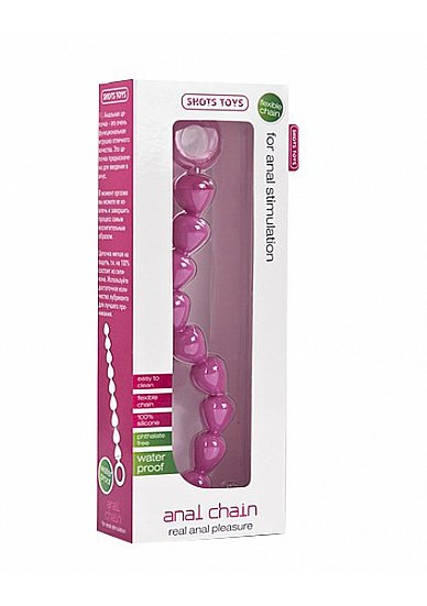 Гибкая анальная цепочка из 9 звеньев разного диаметра. Быстро принимает температуру тела, без запаха. Имеет непористую поверхность, а так же имеется удобная ручка-петля для удерживания. Материал - высококачественный силикон. Общая длина - 25 см, диаметр большего звена 2,5 см, меньшего 2 см. Упаковка - картонная коробка.Характеристики