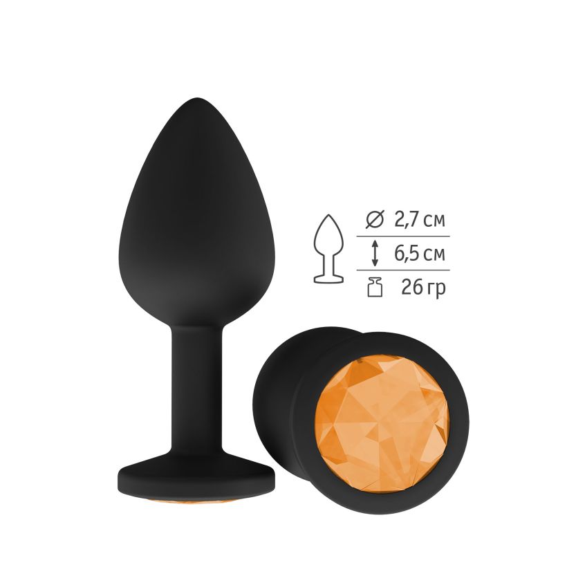 Анальная втулка силиконовая черная с ярким кристаллом маленькая DD Джага-Джага МиФ, длина 7.3 см, диаметр 2.7 смХарактеристики