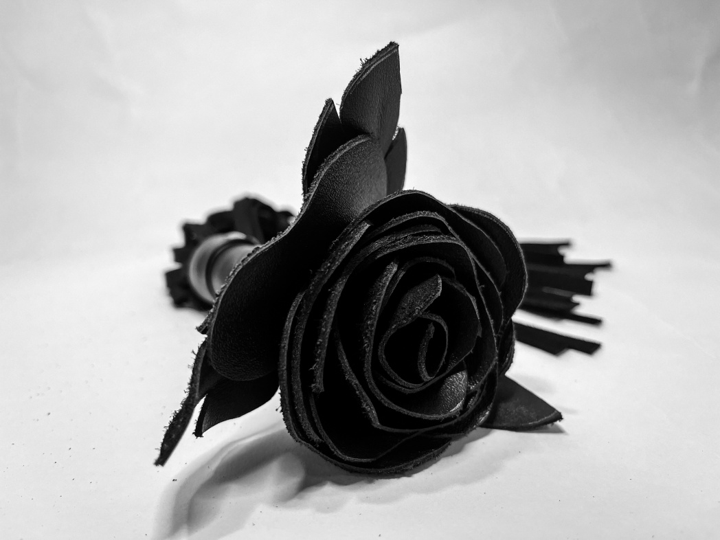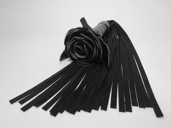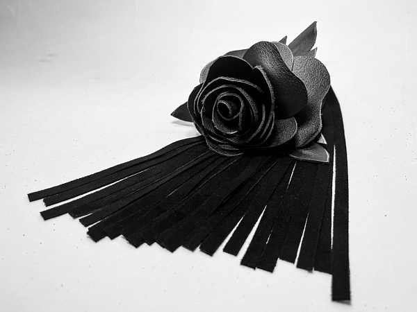 Восхитительная мини-плеть, украшенная чёрной розой. Цветок и рукоятка полностью выполнены из мягкой натуральной кожи, а хвосты плети-натуральная мягкая замша. Размеры этой плети очень изящны - общая длина всего 40см, поэтому данную плеть можно использовать, как генитальную, чтобы добавить новых ярких ощущений. Розочка очень удобно лежит в руке и создает неповторимую атмосферу и настроение, этот аксессуар никого не оставит равнодушным!