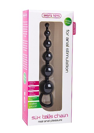 Силиконовая анальная цепочка состоит из шести шариков разных диаметров. Анальная цепочка оснащена небольшим колечком для комфортного ее извлечения и управления. Характеристики анальная цепочка SIX BALLS CHAIN:, длина – 18,5 см, максимальный диаметр – 3,5 см, материал – силикон, производитель – Shotsmedia (Голландия).Характеристики