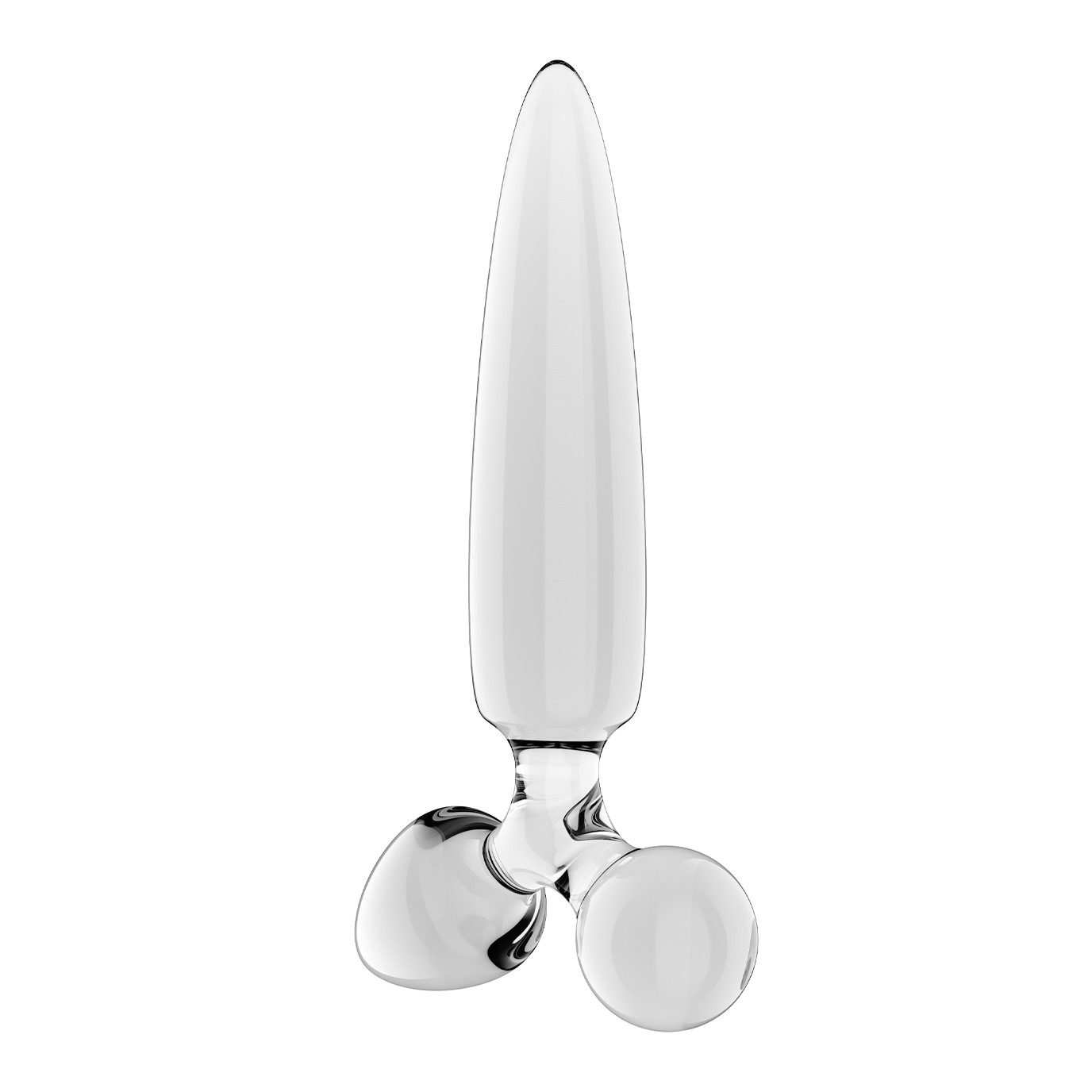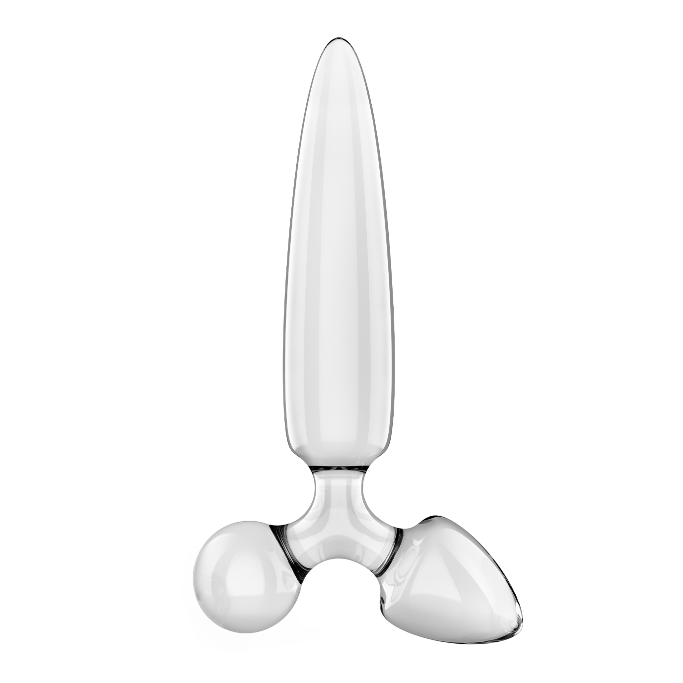 Этот стеклянный дилдо Satisfer обеспечивает тройное удовольствие: Конический фаллоимитатор длиной 21 см и две пробки разной формы дают возможность выбора: Используй его для анальной или вагинальной стимуляции, как тебе больше нравится, — его особая форма обеспечивает безопасную игру в любое время.