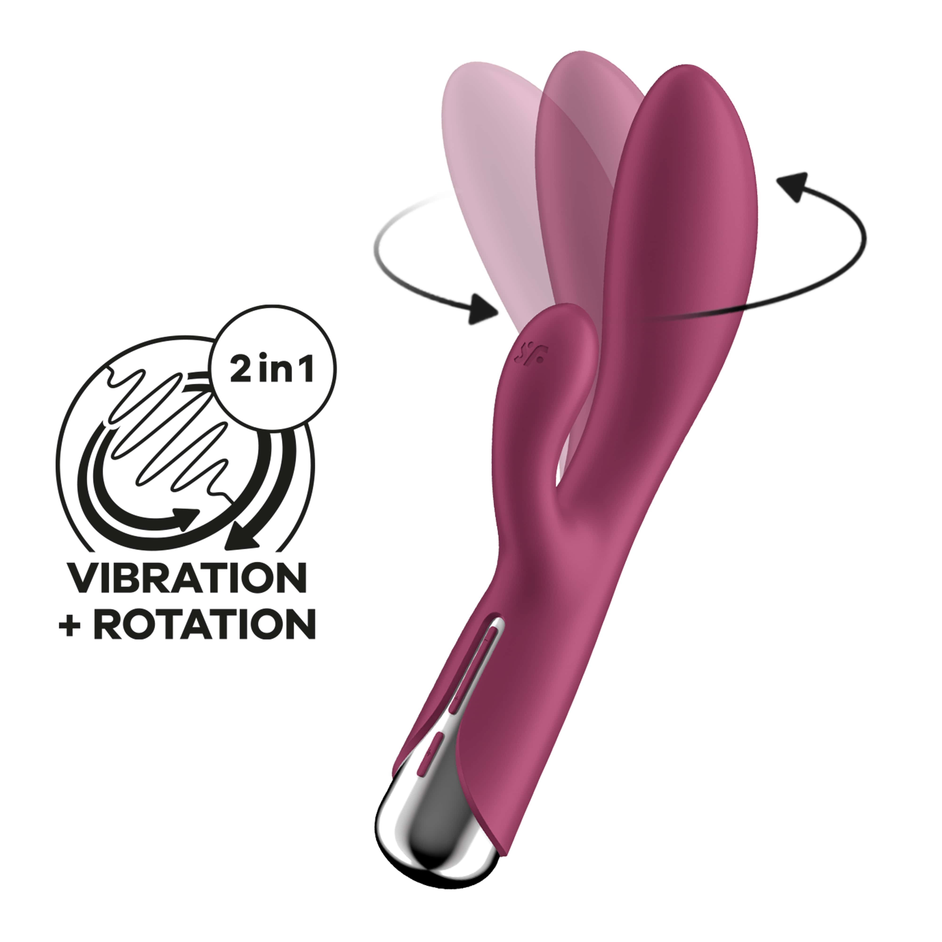 Satisfyer Spinning Rabbit 1 –вибратор-кролик с 3-мя моторами, который идеально сочетает в себе вибрации и ротацию. В дополнение к 12 интенсивным, разнообразным программам вибрации в этом вибраторе-кролике идут 5 дополнительных программ ротации. Вагинальный отросток у этой модели имеет изогнутую форму и округлый кончик для стимуляции передней стенки влагалища и точки «G».